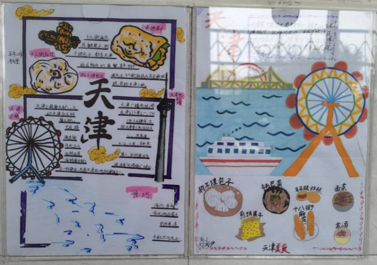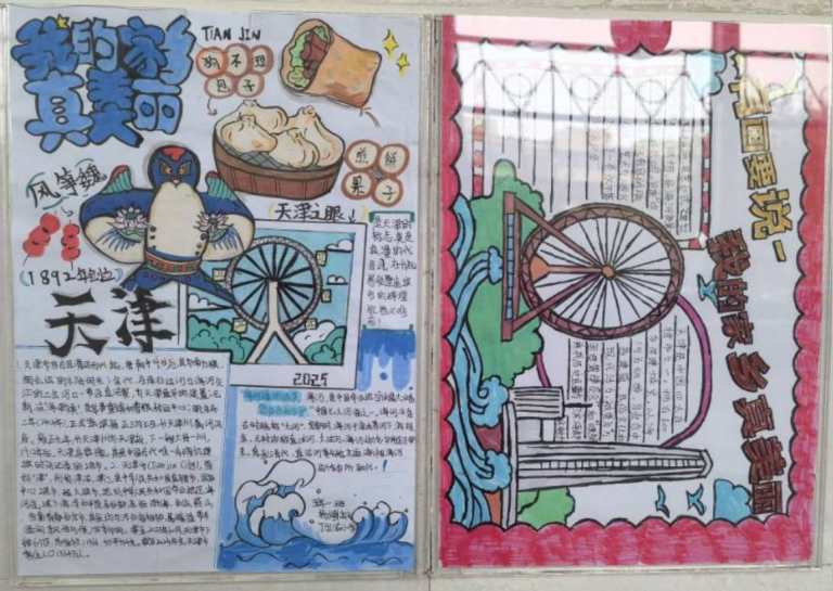 五年级的孩子们从家乡的自然风光、历史文化、传统习俗等角度出发,用细腻的笔触描绘出他们眼中“最美的家乡”。有的介绍了海河两岸的城市变迁,有的书写了津门老字号的故事……一幅幅作品,不仅展现了学生对家乡文化的了解与热爱,更体现了他们在语文学习中逐渐形成的文化自信与表达能力。
