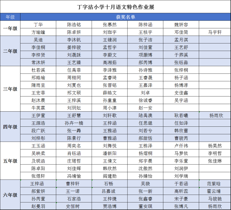 经过层层选拔,最终评选出各年级特色作业展作者名单。