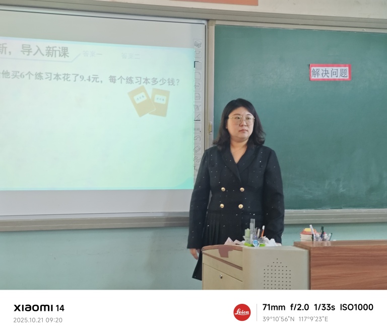 青年骨干教师孙旭执教五年级小数除法《解决问题》。孙老师引导学生在学习小数除法计算的基础上分析并解决生活实际问题,引发学生思考并归纳进一法、去尾法、四舍五入法的适用情境,并在实践练习中拓展提高。