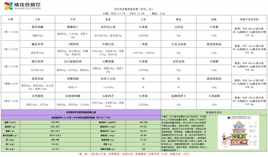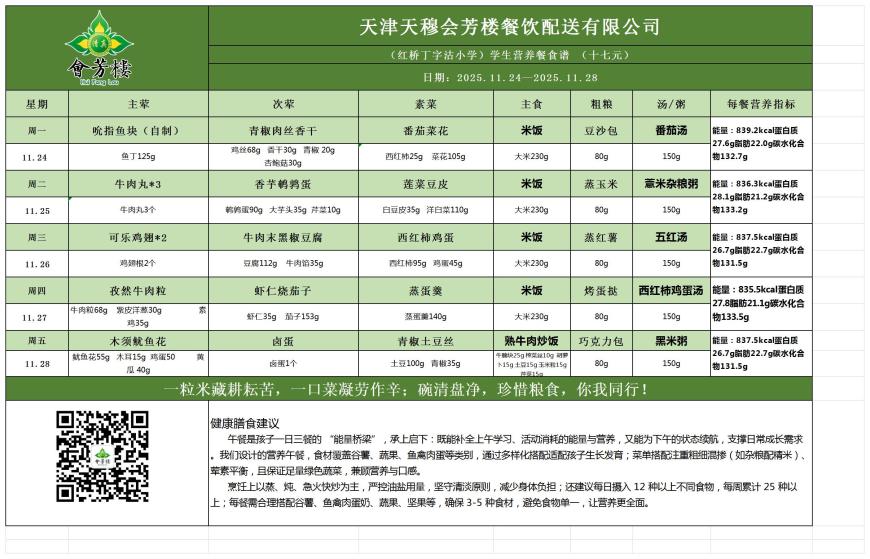 因天气、市场原材料供应变化,可能会出现菜谱细微调整。具体用餐情况以当天实际送餐情况为准。