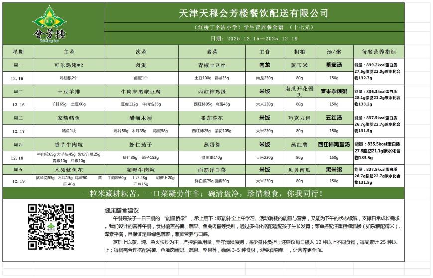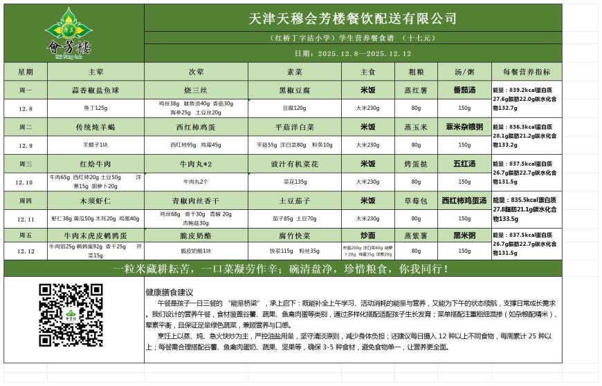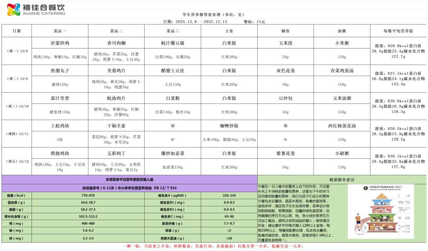 因天气、市场原材料供应变化,可能会出现菜谱细微调整。具体用餐情况以当天实际送餐情况为准。