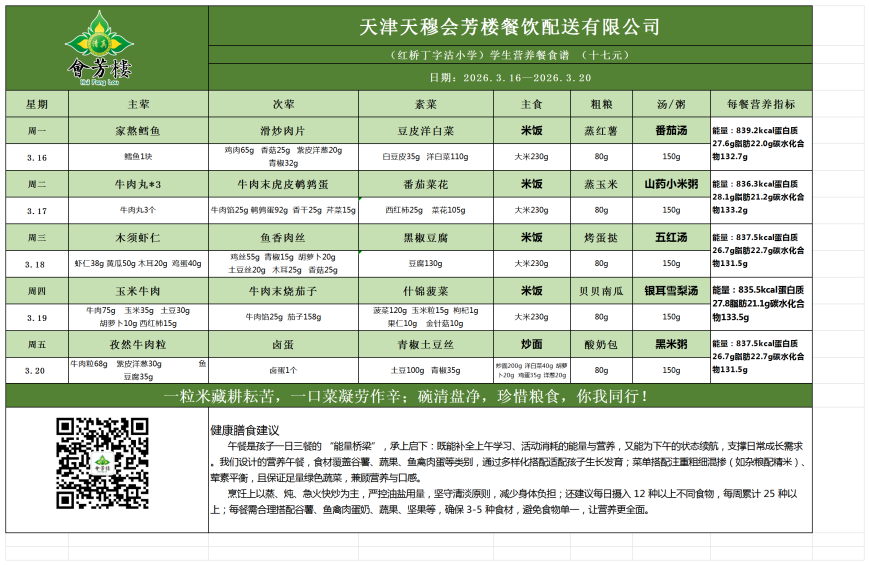 因天气、市场原材料供应变化,可能会出现菜谱细微调整。具体用餐情况以当天实际送餐情况为准。